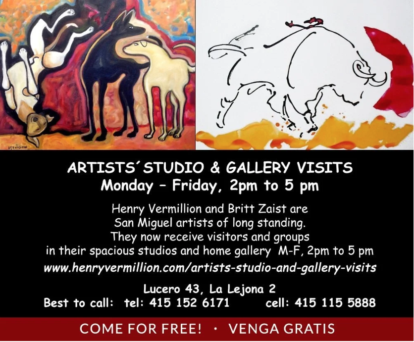 Older work not before shown in San Miguel, along with recent memory paintings by Henry Vermillion are featured in a reception and opening 5 to 8 pm, January 9, 2026 at Galeria Blue Moon, Stirling Dickinson #7, San Antonio, San Miguel de Allende, Mexico.